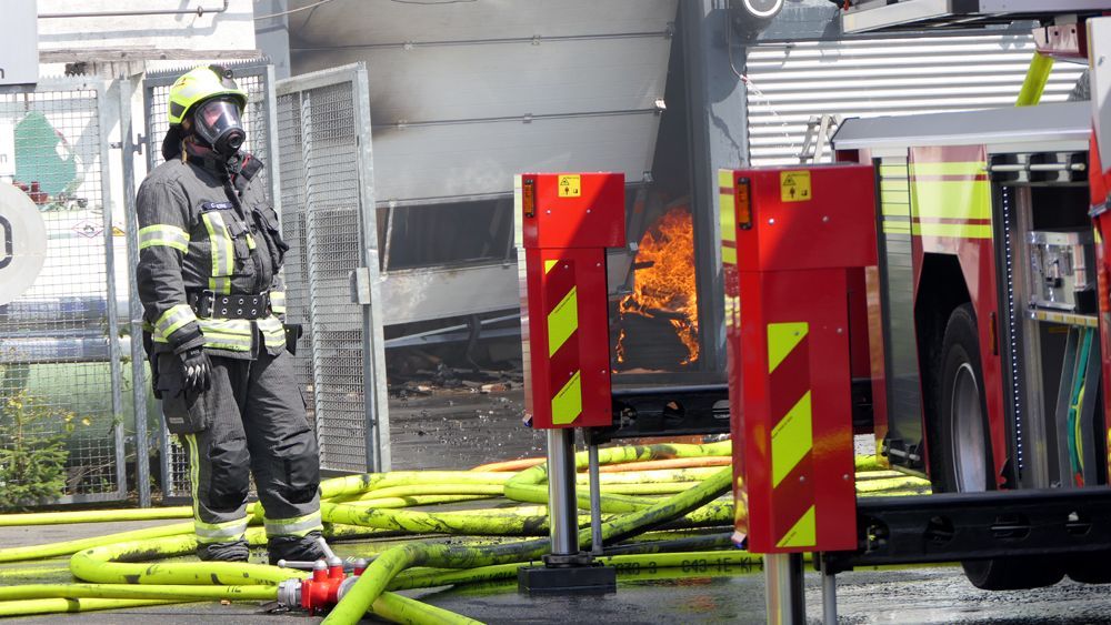 Explosiv gefährliche Gasflaschen und brennende Flüssiggastanks erschwerten den Einsatz zusätzlich. Das Feuer griff auf ein angrenzendes Gebäude über, sodass Höhenretter und spezielle Schutzmaßnahmen erforderlich wurden. Aufgrund ausgelaufener Betriebsstoffe mussten mobile Dämme errichtet und Ölbindemittel eingesetzt werden, um eine Umweltverschmutzung zu verhindern.