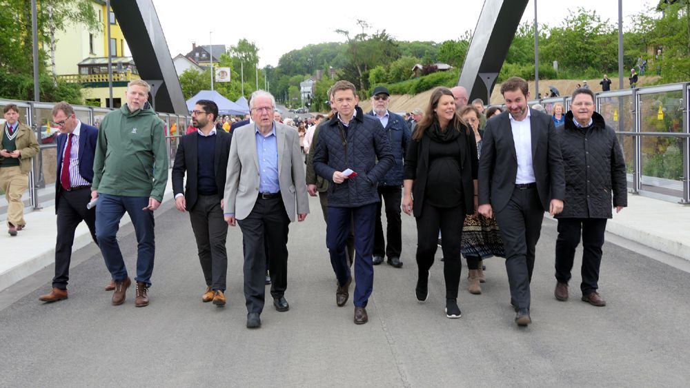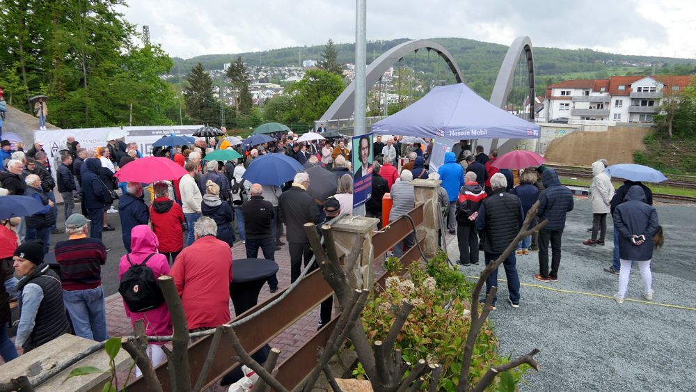 In einem Punkt waren sich alle Redner einig: Der größte Dank am Eröffnungstag geht an zwei Gruppen von Menschen: Zum einen an die Ingenieure, Techniker und Arbeiter der beteiligten Fachfirmen, die ein wirklich beeindruckendes Bauwerk geschaffen haben. Und zwar bei Wind und Wetter und zum Teil unter technisch herausfordernden Bedingungen. Zu größtem Dank verpflichtet sind HessenMobil und die Gemeinde zum anderen allen Anwohnern der Baustelle, dem Hotel Engel, der Praxis Ihm, der Kita Tasimu und anderen Gewerbetreibenden, für die die lange Bauzeit eine Herausforderung und mit schweren Einschränkungen verbunden war.
