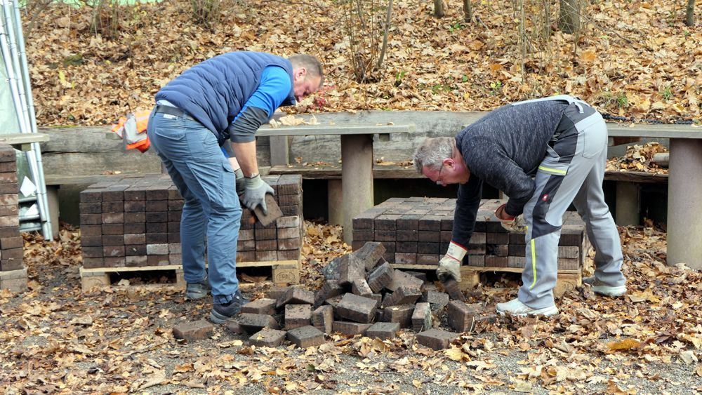 Am Samstag, den 15. November, fand von 10:00 bis ca. 15:00 Uhr ein weiterer Arbeitseinsatz statt. Unter anderem wurden die Steine des ehemaligen Fundaments der abgebrannten Hütte abgetragen. Diese Vorarbeiten werden ehrenamtlich ausgeführt, bevor anschließend die von der Verwaltung beauftragten Dienstleister übernehmen.