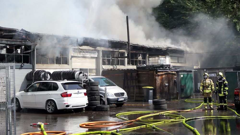 Explosiv gefährliche Gasflaschen und brennende Flüssiggastanks erschwerten den Einsatz zusätzlich. Das Feuer griff auf ein angrenzendes Gebäude über, sodass Höhenretter und spezielle Schutzmaßnahmen erforderlich wurden. Aufgrund ausgelaufener Betriebsstoffe mussten mobile Dämme errichtet und Ölbindemittel eingesetzt werden, um eine Umweltverschmutzung zu verhindern.