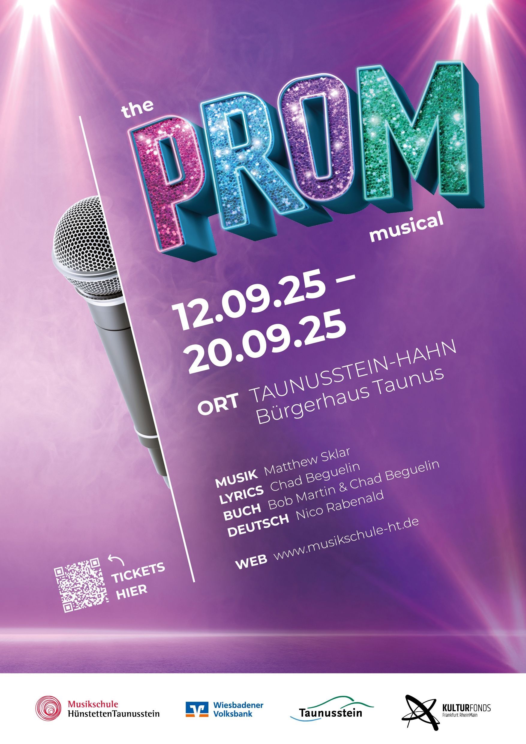 Vom 12. bis zum 20.09.2025 wird das Musical mit insgesamt 34 Mitwirkenden und einer professionellen 17-köpfigen Live-Band auf die Bühne gebracht. Der Weg zum großen Ball (THE PROM) ist voller liebenswerter Momente, berührender Songs, schillernder Tanznummern und jede Menge Humor.