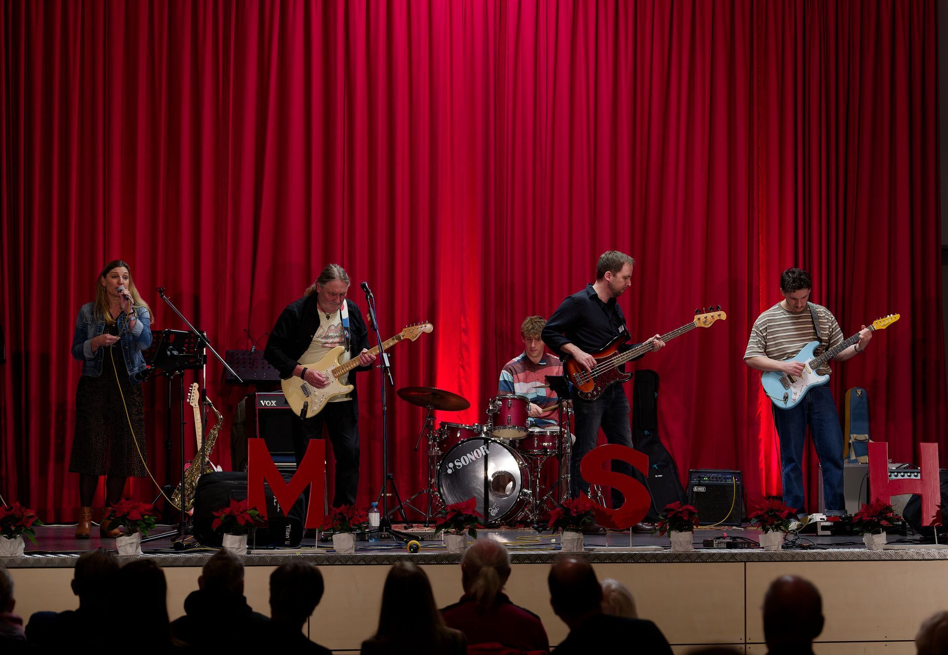 Den Auftakt in ein abwechslungsreiches Programm machte das achtköpfige Streicherensemble, die Young Strings, mit zwei liebenswerten Beiträgen aus dem Bereich der Filmmusik. Im gleichen Genre entführte Benjamin Seefeldt das Publikum mit seiner Posaune in das Reich der Piraten. Nach einem Sprung durch die Musikgeschichte des Streicherensemble STRINGendo, von Beethoven zu George Gershwin, konnte nochmals Winfried Fest einen weiteren Posaunenschüler, Raphael Weigoldt, mit „The Greatest Love of All“ am Klavier begleiten. Weiter ging die Reise durch Zeit und Raum mit dem bravourösen Beitrag „Solamente Una Vez“ womit ein Lehrkräfteensemble mexikanisches Flair nach Ketternschwalbach brachte. Im folgenden modernen Geigenbeitrag „Hymn“ von Nightcall, eindrucksvoll energetisch gespielt von Noel Zutz, fühlten sich wohl einige im Publikum an das vermeintliches Idol David Garrett erinnert. Nach einem musikalischen Zooaufenthalt, präsentiert durch das Blockflötenensemble FLAUTEMUS, umrahmte Tim Eriksson mit zwei knackig kurzen, virtuos vorgetragenen Stücken eine kurze Verschnaufpause bei Getränken und Gesprächen für das Publikum. Das Saitenensemble VielSAITIG brachte nochmal die Leichtigkeit eines schwedischen Sommertags in den Taunus und ließ die Temperatur mit „Viva la Vida“ weiter steigen. Es folgten zwei Lehrkräfte Duos, Etienne Malan, Klarinette, begleitet von Jennifer Möbus Klavier und das eher exotische Duo mit Anja Schnabel am Cello und Mathias Hößel am Vibrafon. Zum Ende hin wurde es nochmal kräftig laut mit zwei Stücken des Percussion Ensembles „7 Stroke Roll“ und der Band „Closed Curtain“ welche einen fulminanten Abend abschloss. Im Rahmen des Konzertes konnten auch einige Lehrkräfte für ihr langfristiges Engagement, mit bis zu 35 Jahren Musikschularbeit, geehrt werden.