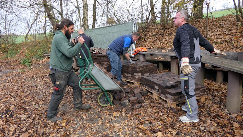 Am Samstag, den 15. November, fand von 10:00 bis ca. 15:00 Uhr ein weiterer Arbeitseinsatz statt. Unter anderem wurden die Steine des ehemaligen Fundaments der abgebrannten Hütte abgetragen. Diese Vorarbeiten werden ehrenamtlich ausgeführt, bevor anschließend die von der Verwaltung beauftragten Dienstleister übernehmen.